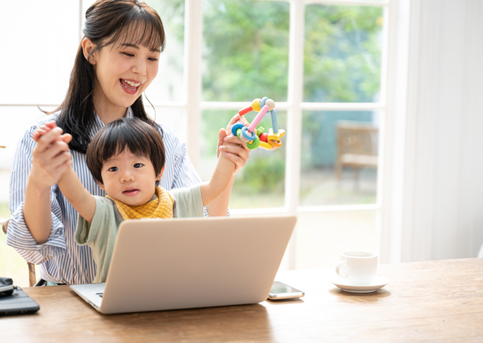 リモートワークやお迎えに合わせた柔軟なスケジュールを導入。